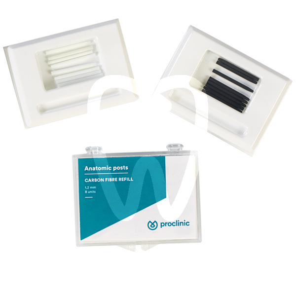 30 days return guaranteeThe Proclinic endodontic range has been expanded with new fibreglass and carbon-fibre posts, a major innovation in the prosthetic reconstruction of devitalised teeth. - Proclinic anatomical posts are manufactured in special fibreglass and epoxide resin, for optimum affinity with cements typically used to bond and reconstruct cores. - The wide range of sizes ensures that there is always a post that adapts to the canal anatomy, without any loss of root dentine. - The micro-grooved surface and, in the case of fibreglass posts, the dentine-like colour guarantee optimum contact with the surface of the tooth, increasing axial resistance and providing a colour similar to that of dentine in visible areas. Features: Elastic modulus akin to that of dentine. No root fracture. Longitudinal fibres. No oxidation or corrosion. Cylindrical-conical shape. Physicochemical compatibility between post, cement, dentine and reconstruction. Easy to use. Great value. Micro-grooved surface. Advantages: Post can be easily removed for subsequent treatments. Stable and biocompatible. Post is fracture resistant. Uniform distribution of occlusal forces and no periodontal damage. Made from a single piece. Considerable cost savings. Better contact with bonding agent.