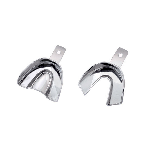 Metal trays for making dental impressions. Without perforation and with retentive rim. Made of stainless steel.
