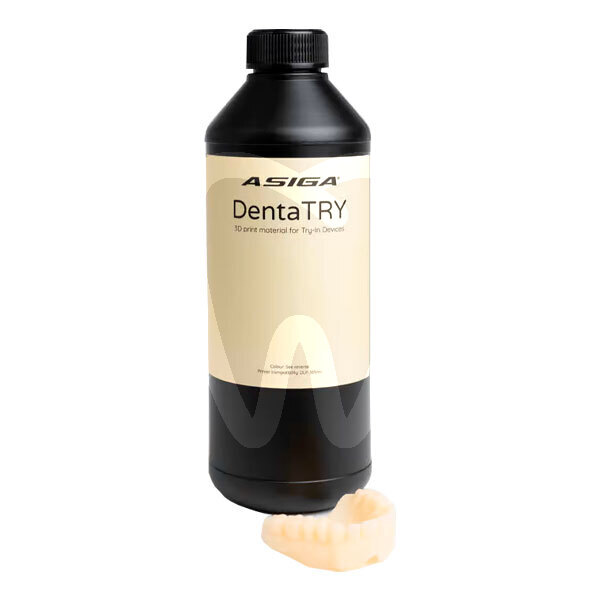 30 days return guaranteeDentaTRY A2 1 Kilo 385nm is a biocompatible CAD/CAM 3D printing resin from Asiga for producing try-in dentures. A printed try-in is a key clinical step to validate the fit, occlusion, and intended aesthetics of a digital denture design before manufacturing the final prosthesis, helping streamline approvals and reduce chairside adjustments.
