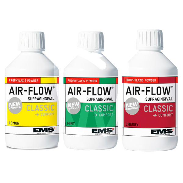 30 days return guaranteeAIR FLOW COMFORT POWDER - CHERRY is a sodium bicarbonate-based prophylaxis powder designed for use with EMS air-polishing prophylaxis units. It is intended for professional dental hygiene procedures where air polishing is indicated to help remove extrinsic staining and soft deposits as part of routine prophylaxis. Sales format: 1 unit. Pack size: jar containing 300 g of powder.